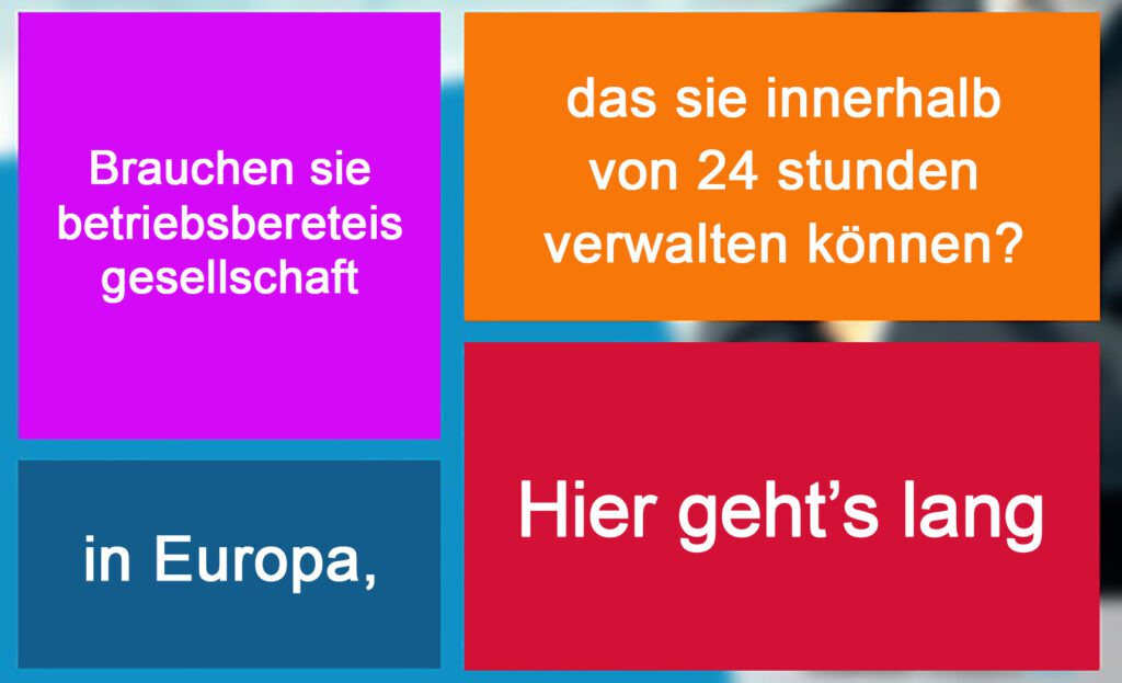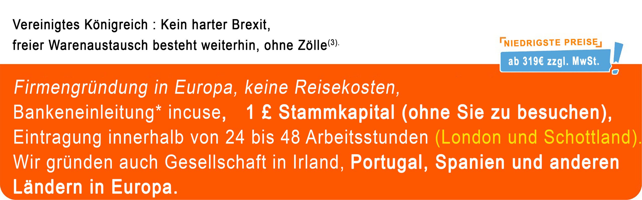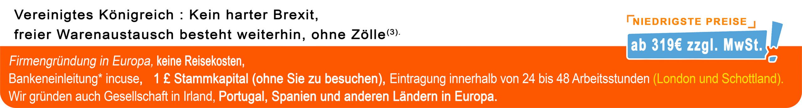 • Gründung einer Gesellschaft in Europa, mit der Möglichkeit der Zahlung in 2 Raten