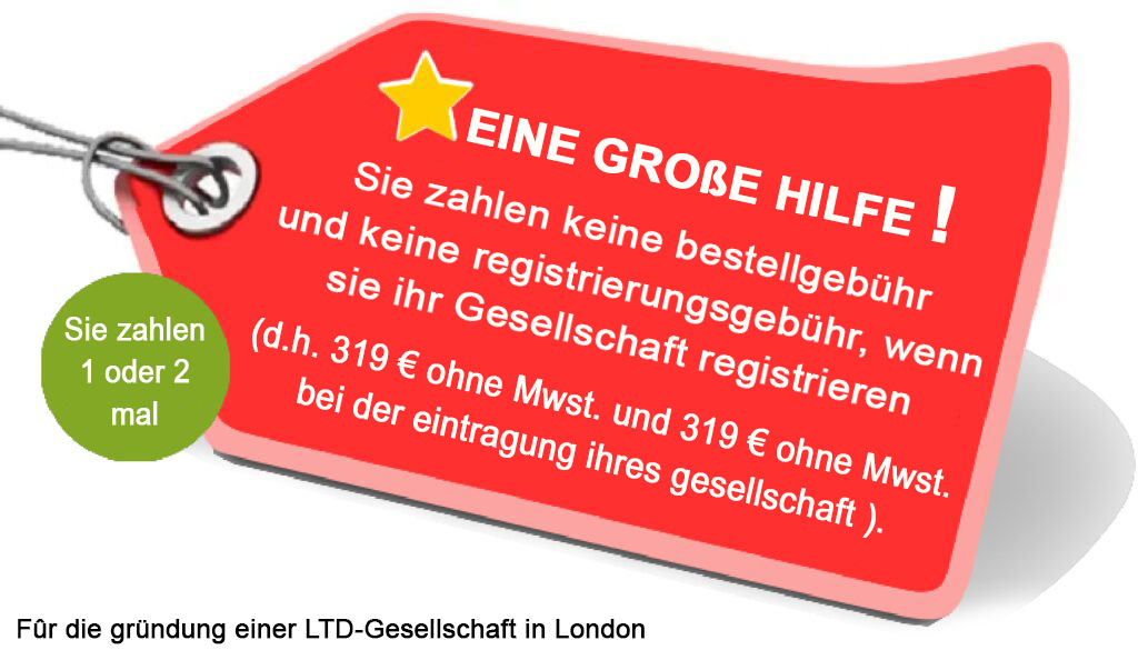 Stammkapital ab 1 £, keine Aufenthaltserlaubnis, Gesellschaft in 1 Werktag (UK). Keine Reise