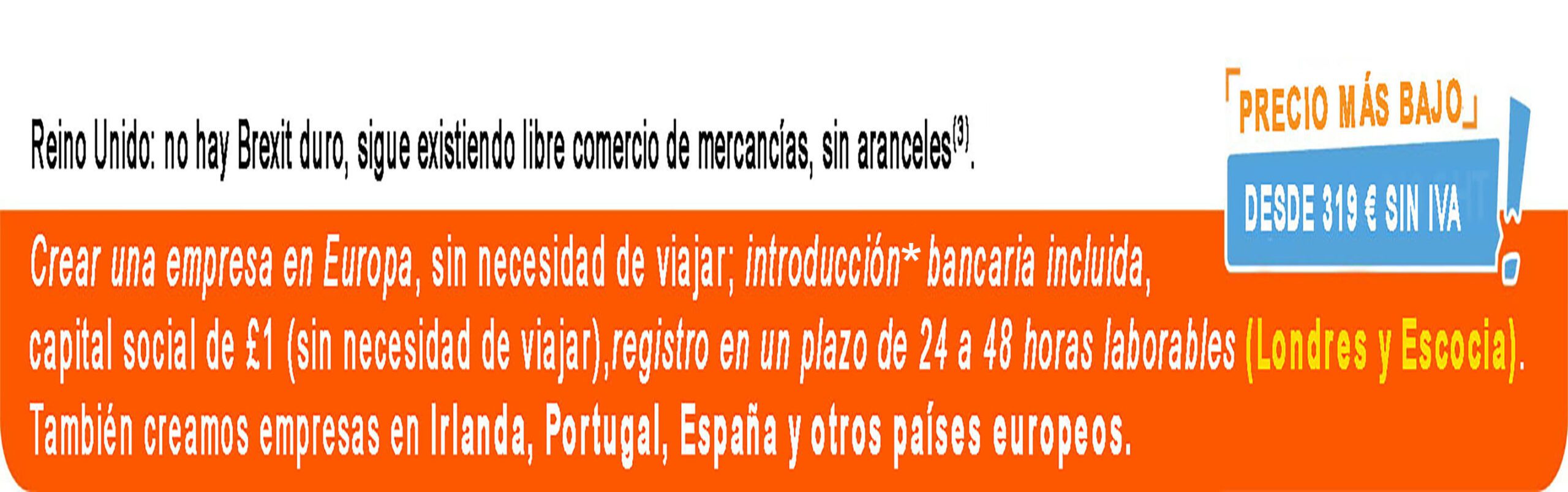 • Creación de empresas en Europa, con la posibilidad de pagar en 2 plazos