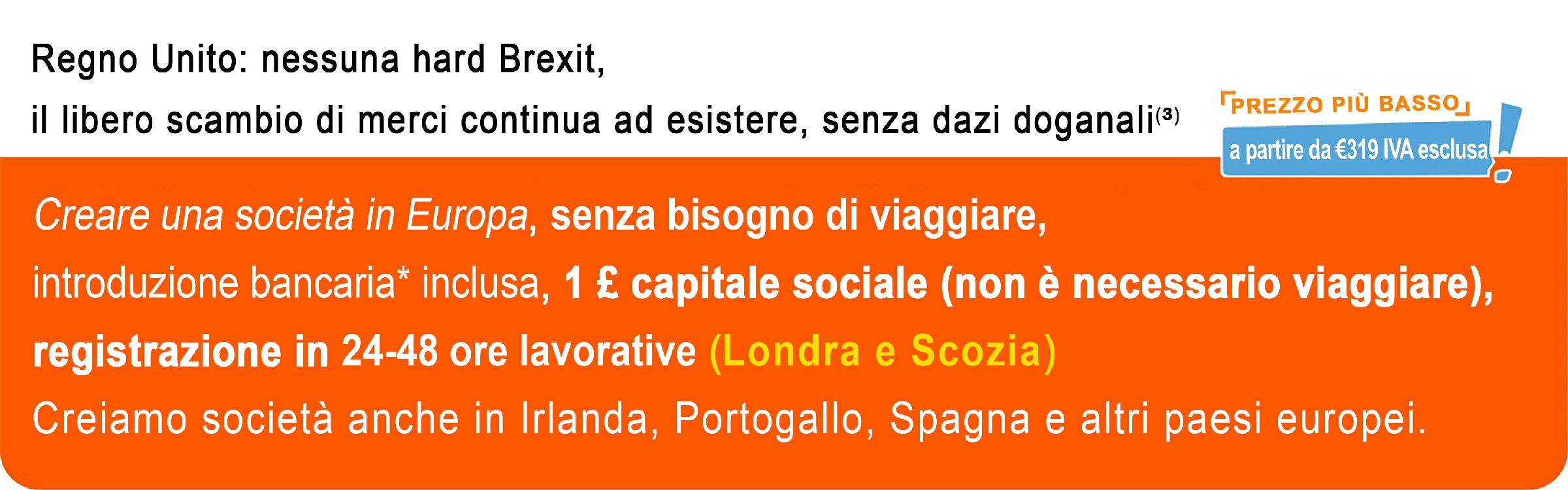 Capitale sociale a partire da 1 £, senza necessità di permesso di soggiorno, costituzione della società in 1 giorno lavorativo (Regno Unito). Nessuna necessità di spostamenti