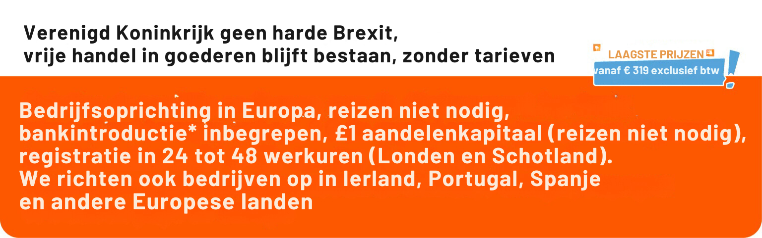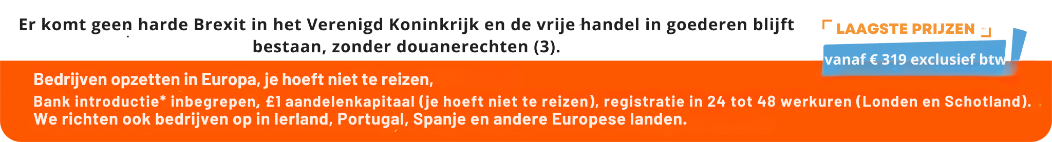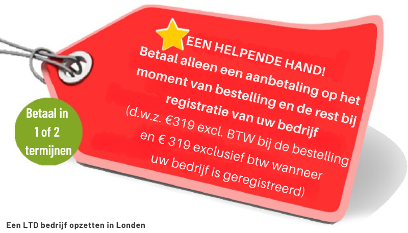 (1) Tevredenheid of je geld terug garantie: registratie van je bedrijf met een tevredenheidsgarantie of je geld terug garantie in het Verenigd Koninkrijk, op voorwaarde van ontvangst van het volledig ingevulde oprichtingsformulier, vergezeld van een scan van het geldig paspoort of identiteitskaart en een bewijs van adres dat minder dan 3 maanden oud is (vaste of mobiele telefoonrekening of elektriciteitsrekening of gelijkwaardig, in het Frans of Engels), voor elk van de bestuurders, partners en leden. Gegarandeerde bedrijfsoprichting in 1 tot 4 werkdagen: alleen voor het Verenigd Koninkrijk.